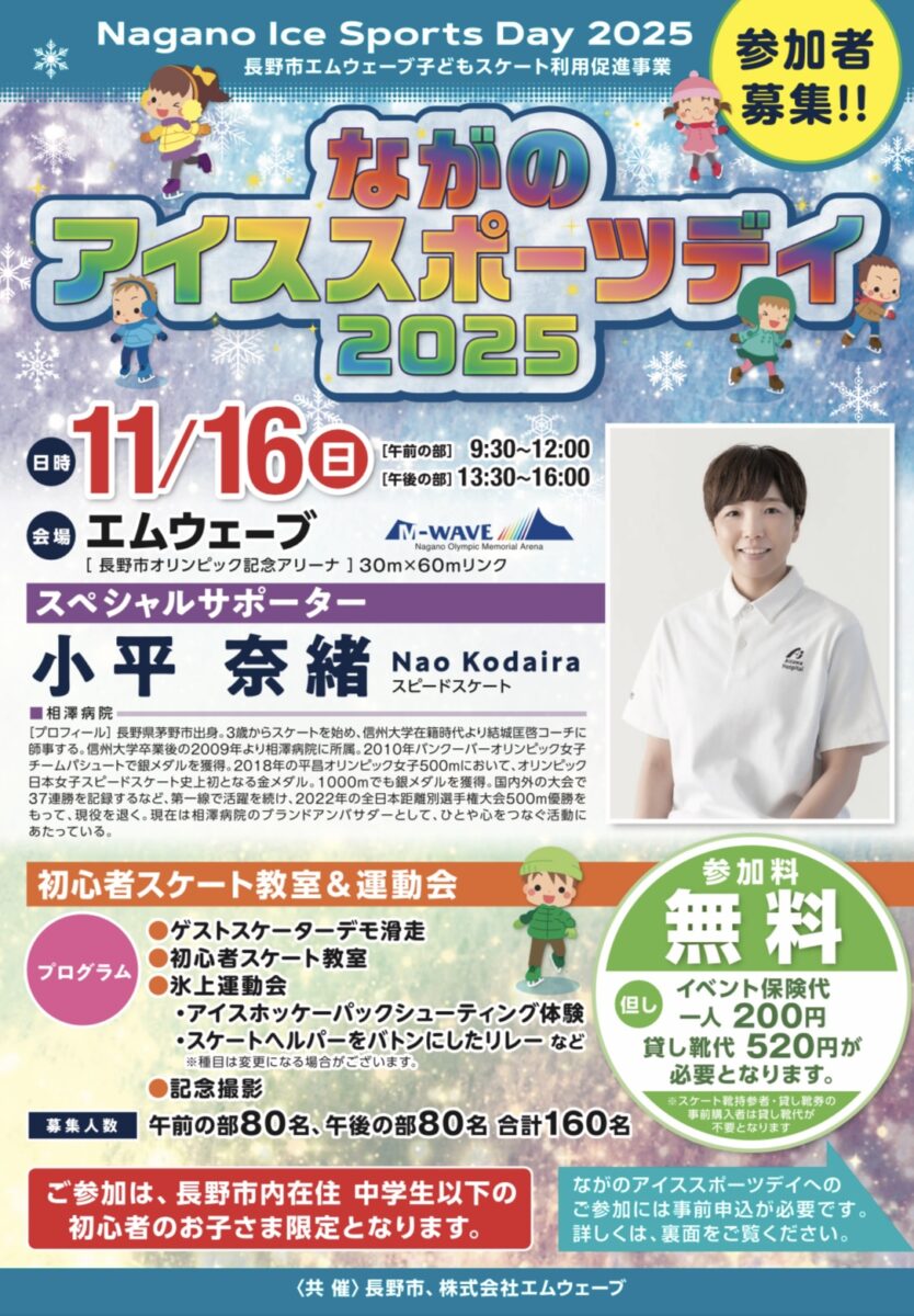 11月16日(日)長野県のエムウェーブで開催された『ながのアイススポーツディ』に参加してきました!スケート初心者の子供た…